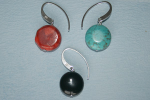 PENDIENTE PLATA DE LEY CON PIEDRA NATURAL PLANA REDONDA Y GANCHO.