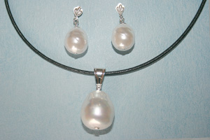 Conjunto en plata de 1ª ley CON CUERO Y PERLAS NACAR BARRILETE.